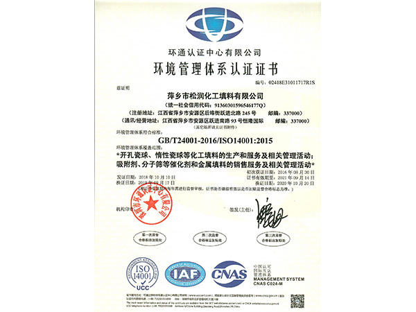 環(huán)境管理體系認證證書